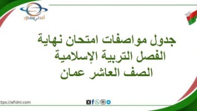 جدول مواصفات امتحان نهاية الفصل التربية الإسلامية الصف العاشر
