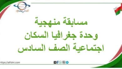 مسابقة منهجية وحدة جغرافية السكان اجتماعية صف سادس فصل ثاني