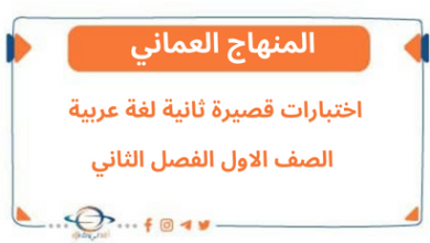 اختبارات قصيرة ثانية لغة عربية الصف الاول الفصل الثاني عمان