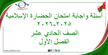 أسئلة واجابة امتحان حضارة إسلامية حادي عشر فصل أول 2025-2026