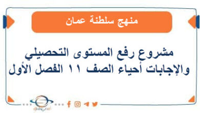 مشروع رفع المستوى التحصيلي والإجابات أحياء حادي عشر فصل أول