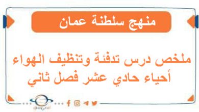 ملخص درس تدفئة وتنظيف الهواء أحياء حادي عشر فصل ثاني