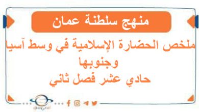 ملخص شامل حضارة إسلامية حادي عشر فصل ثاني عمان