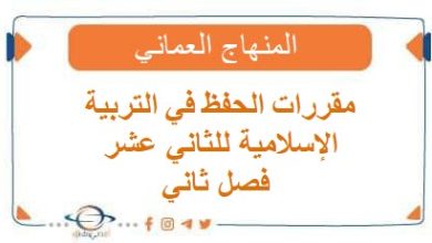 مقررات الحفظ في التربية الإسلامية للثاني عشر فصل ثاني منهج عمان