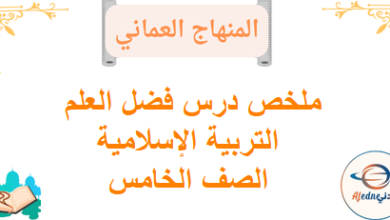 ملخص درس فضل العلم التربية الإسلامية الصف الخامس الفصل الأول