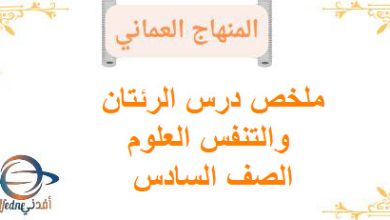 ملخص درس الرئتان والتنفس العلوم صف سادس فصل أول منهاج عماني