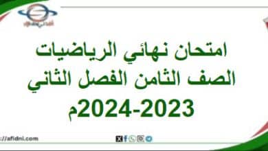امتحان نهائي الرياضيات الصف الثامن الفصل الثاني 2023-2024م