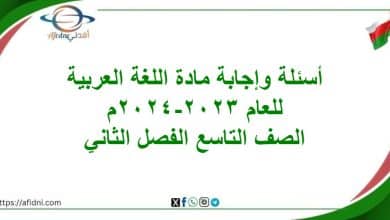 حلول كتاب اللغة العربية التاسع الفصل الثاني المنهج العماني