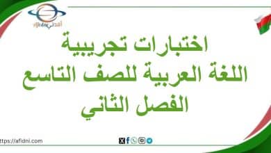اختبارات تجريبية مادة اللغة العربية صف تاسع فصل ثاني