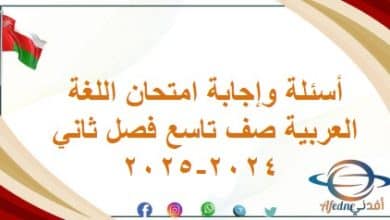 أسئلة وإجابة امتحان اللغة العربية صف تاسع فصل ثاني 2024-2025