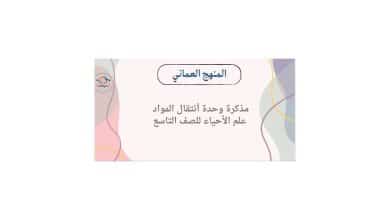 مذكرة وحدة انتقال المواد في علم الأحياء الصف التاسع فصل أول