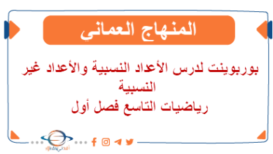 بوربوينت لدرس الأعداد النسبية والأعداد غير النسبية رياضيات التاسع فصل أول عمان