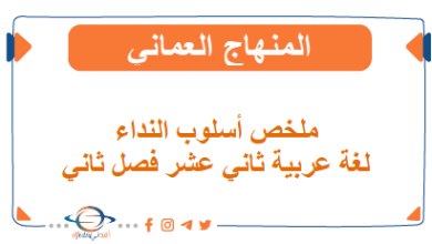 ملخص أسلوب النداء لغة عربية ثاني عشر فصل ثاني المنهج العماني