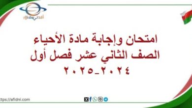امتحان وإجابة مادة الأحياء الصف الثاني عشر فصل أول 2024-2025
