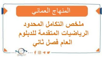 ملخص التكامل المحدود الرياضيات المتقدمة للدبلوم العام فصل ثاني عمان