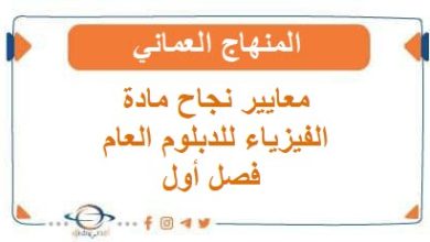 معايير نجاح مادة الفيزياء للدبلوم العام فصل أول المنهاج العماني