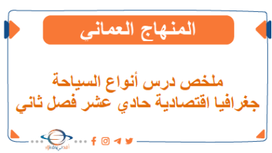 طلاب الصف الحادي عشر في عمان، نقدّم لكم من المنصة العمانية أفدني ملخصًا لدرس أنواع السياحة في الجغرافيا الاقتصادية الفصل…