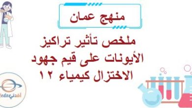 للحصول على ملخص تأثير تراكيز الأيونات على قيم جهود الاختزال كيمياء 12 فصل 1 منهاج عمان من خلال زيارتك لمنصة…