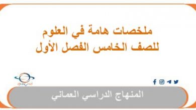 ملخصات هامة في العلوم للصف الخامس الفصل الأول