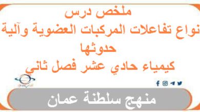 ملخص أنواع تفاعلات المركبات العضوية وآلية حدوثها حادي عشر