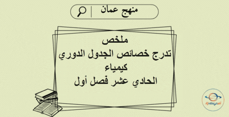 ملخص تدرج خصائص الجدول الدوري كيمياء الحادي عشر فصل أول عمان