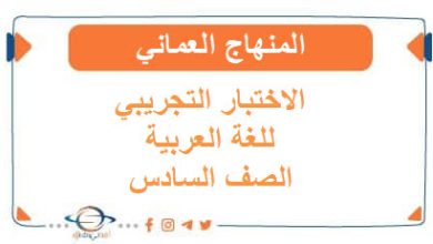 الاختبار التجريبي للغة العربية صف سادس فصل ثاني