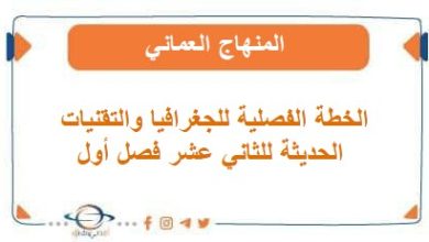 الخطة الفصلية للجغرافيا والتقنيات الحديثة للثاني عشر فصل أول